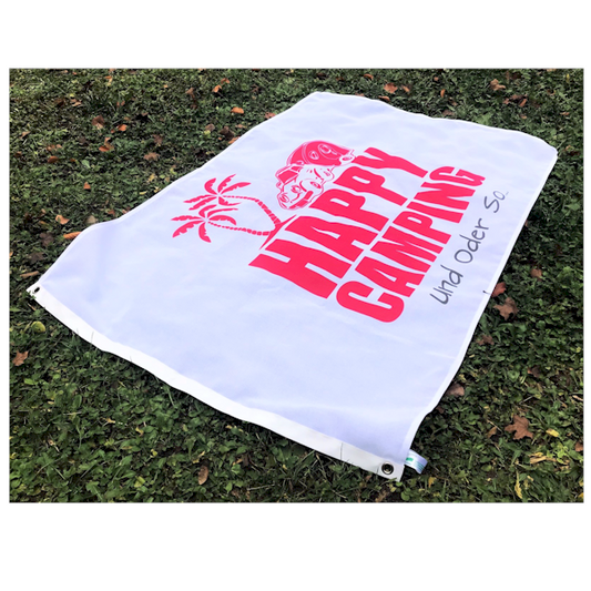 Happy Camping Fahne mit Ösen